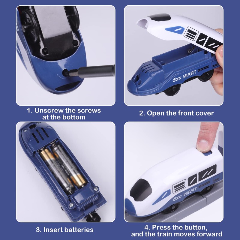 - 【PLAY LONGER】Powered by 2*AA batteries (not included), the train engine is not only more powerful and faster than others, but this unique design also doubles the time for the next battery change.