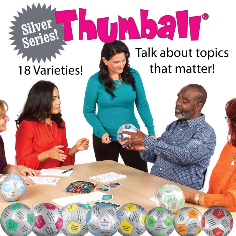 Share your reaction to whatever prompt lies under your thumb. Thumball is a soft 6" stuffed ball with loads of applications!