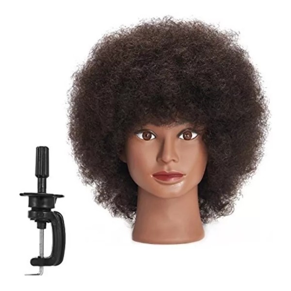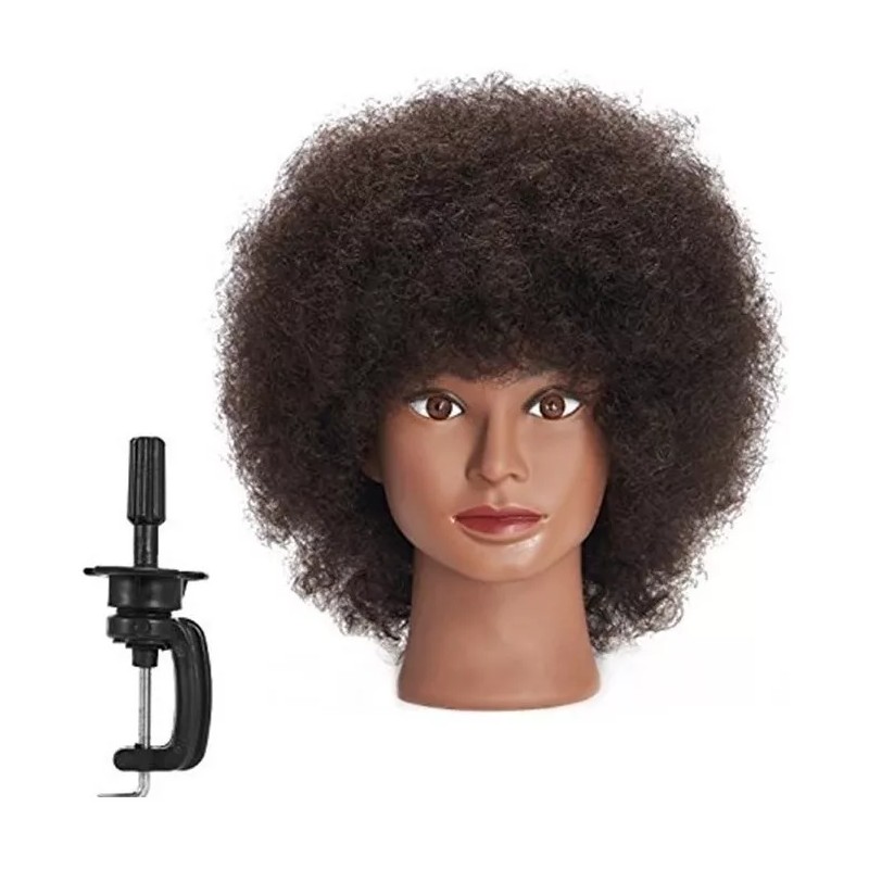 Traininghead 10'' Afro Mannequin Head With 100% Human Hair Training Head Manikin Cosmetology Doll Head For Hairdresser With Clamp Stand (10 inches)