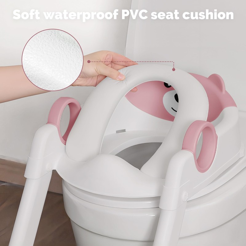 - 🐻Soft Cushion - COOSEYA toilet training seat with step stool is equipped with a waterproof PVC seat cushion, which has good resilience and soft touch, protecting children's delicate skin. Warm and comfortable in winter, clean and refreshing in summer.