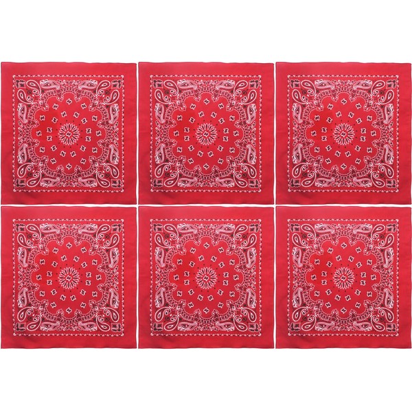 Trainmen Paisley 27" Jumbo Military Bandana Head Scarf Do-rag 100% Cotton Bandanna Face Cover 6-Pack (Red & White)