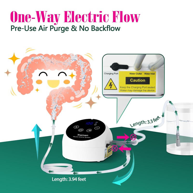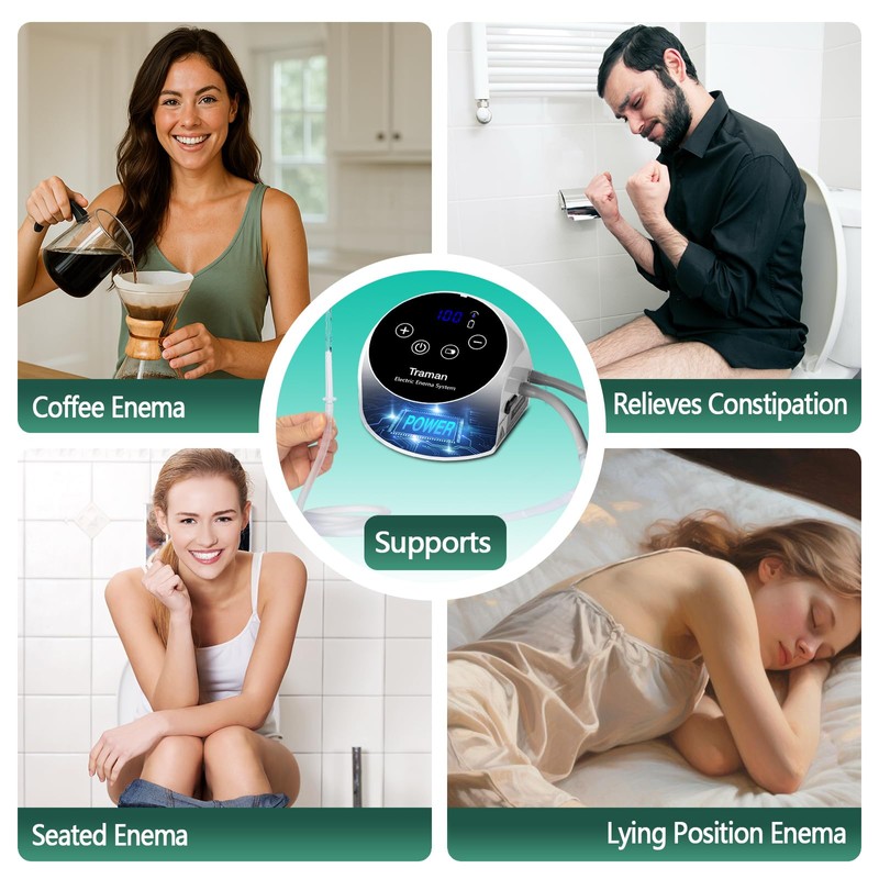 TRAMAN-Enema-Kit, Detox-Enemas for Colon-Cleanse for Women Men, Coffee Enema Coffee-Organic Cleanse Kit, Electric Water Flow Speed Control with LCD Display, Pressure Spray, External Water Supply