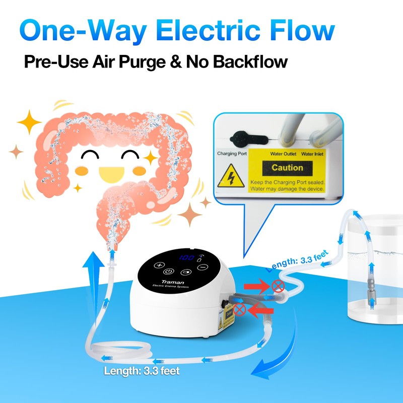 - Supports Sitting Position Enemas & Pressure Water Supply:This electric enema kit uses a pump-operated water supply with adjustable flow rates ranging from level 5 to 100. It's easy to operate and delivers an even, quick flow of water without the need for elevated placement. Users can easily perform an enema while sitting on the toilet, making it ideal for coffee enema, enema for fecal impaction, constipation relief, and detox enemas for colon cleanse for women and men.