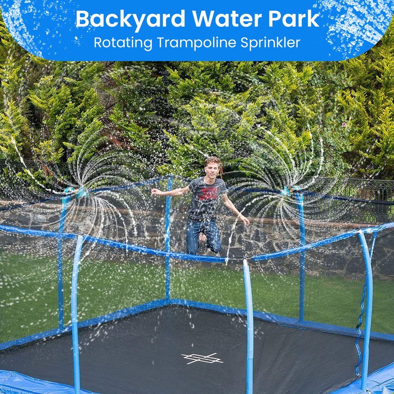 - Perfect for Kids: This trampoline sprinkler waterpark can be used to add more fun on net trampoline, netless trampoline, waterslide, or lawn. Imagine setting this sprinkler up in your backyard, the kids are going to love you! The water sprinkler keeps kids entertained all summer and stays at home for safety. Perfect gift for kids to play outside, birthday party, pool party, etc. If you have any questions, please contact us. Exclusive copyright, counterfeiting must be investigated.