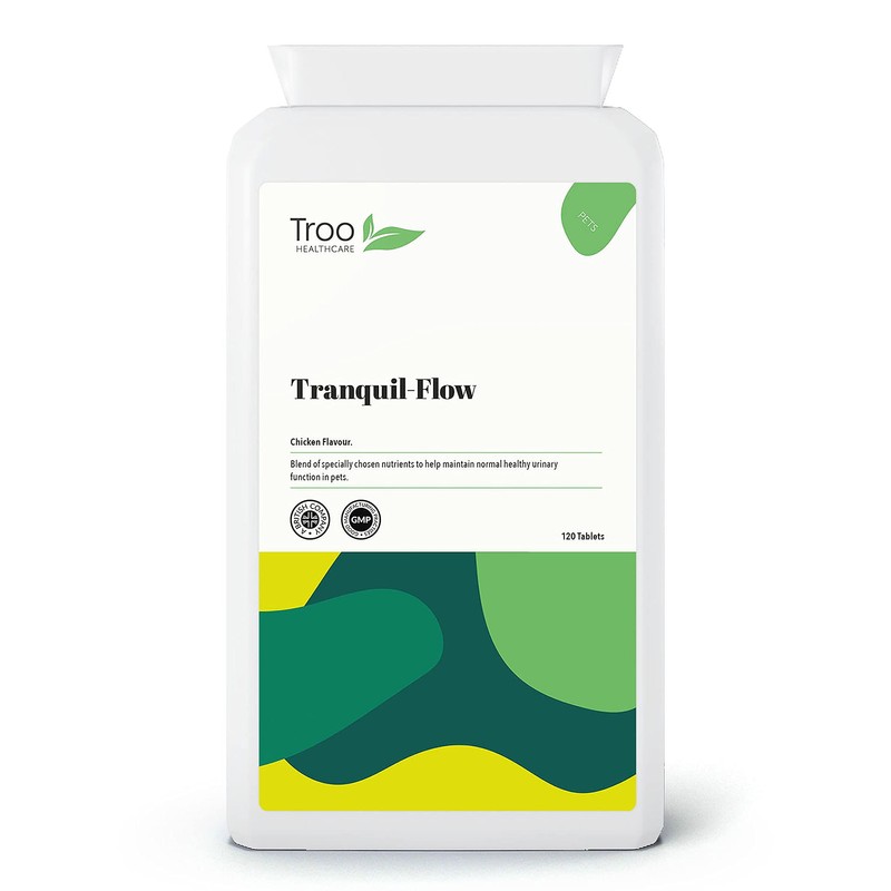 - EASY TO ADMINISTER - Troo Health Tranquil-Flow tablets come in yummy chicken flavour and are easy to administer either as a whole tablet or by breaking/crushing to mix into food. The urinary support tablets are packed into innovative letterbox friendly and recyclable packaging for easy transportation and storage.