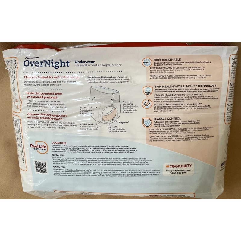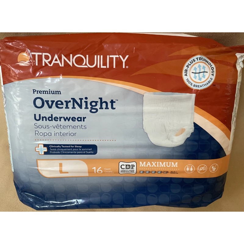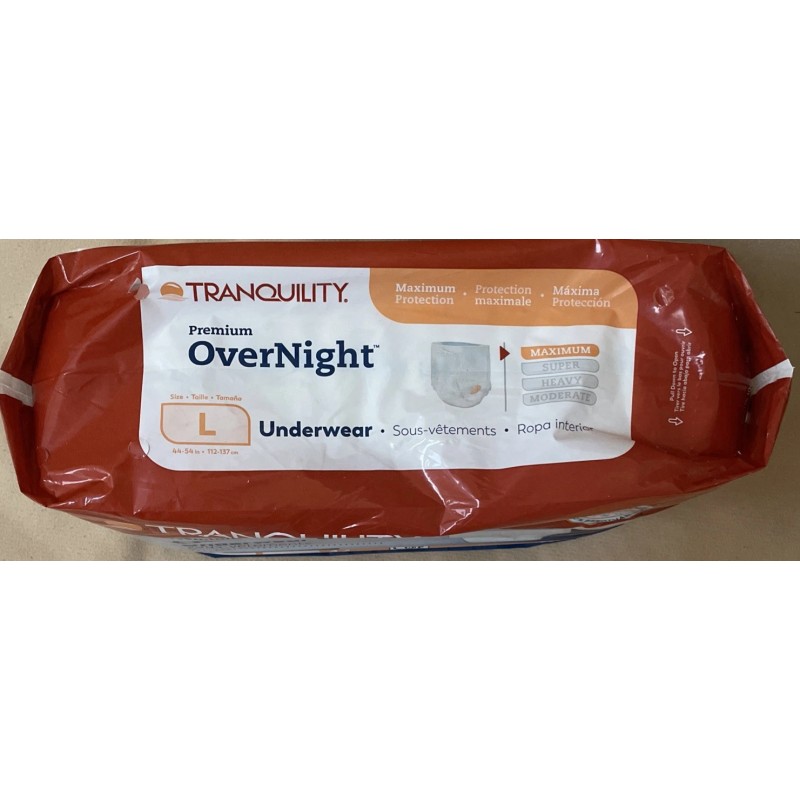 Tranquility Premium Overnight Underwear LARGE 44-54" 16 Pack MAXIMUM Protection