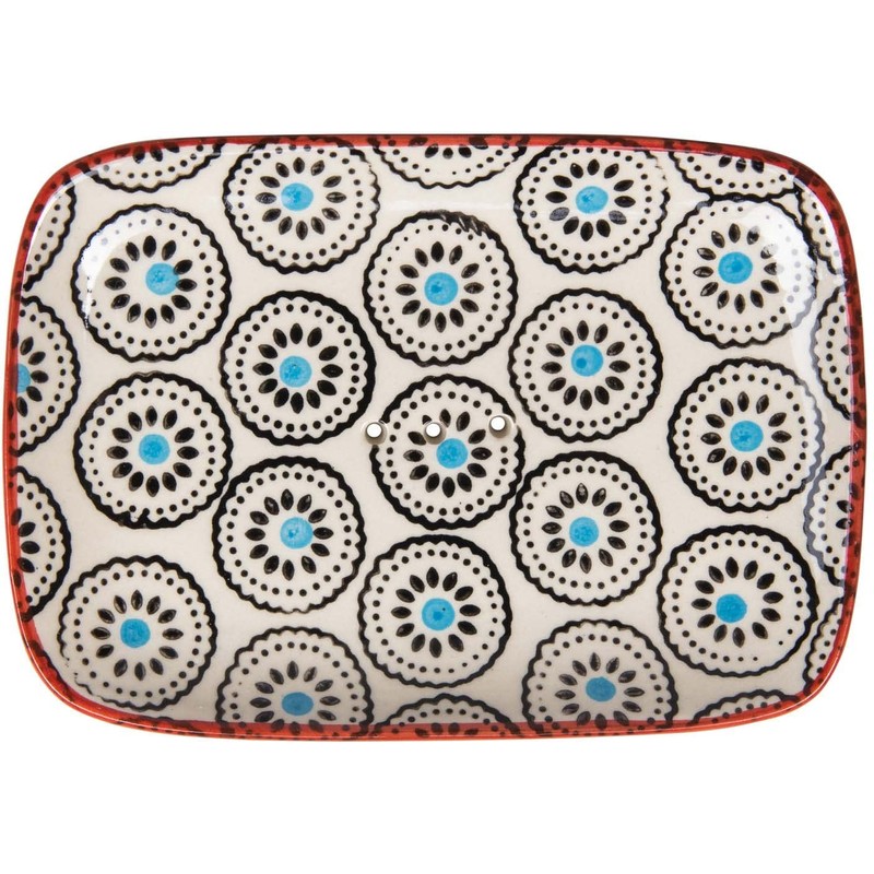 Hand painted eye-catcher for the bathroom: beautiful soap dish from Tranquillo made of Indian ceramic. With three small holes to keep the soap always dry. Each piece is unique. Colour and texture deviations are possible.