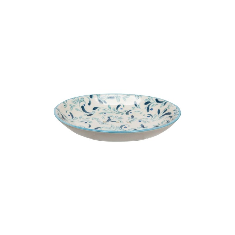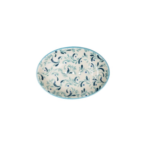 Tranquillo Oriental Oval Stoneware Soap Dish with Blue Print with Holes for Drainage 14 x 9.5 x 2 cm