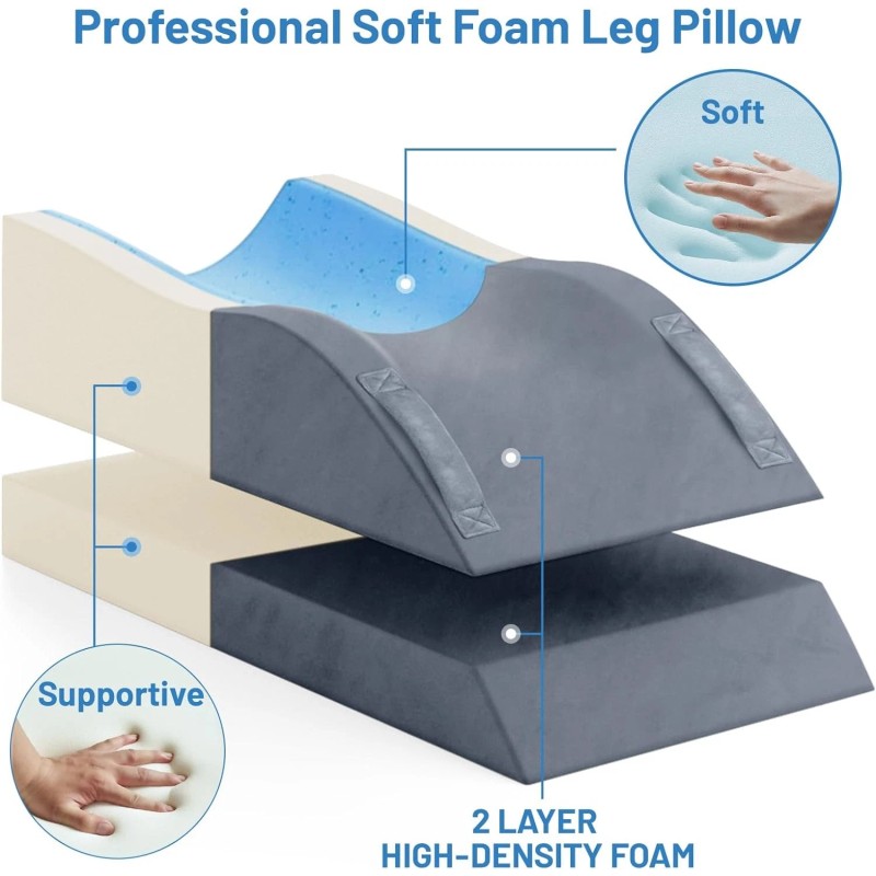 - Soft and Supportive Memory Foam: The top layer of our leg pillows is made of more soft memory foam with better resilience, providing exceptional comfort and ensuring a refreshed sleep experience even with prolonged use. The bottom two layers are constructed with high-density foam, offering ample support that retains its shape over time. Say goodbye to discomfort and deformity caused by inferior leg pillows