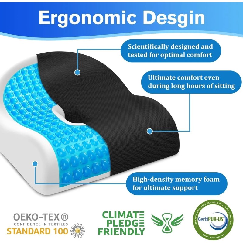 - Pain Relief: Our seat cushion can help you maintain the right posture. It can alleviate an array of problems, including back pain, sciatica, herniated discs, pregnancy-related back pain, hip pain, hemorrhoids, and pressure sores