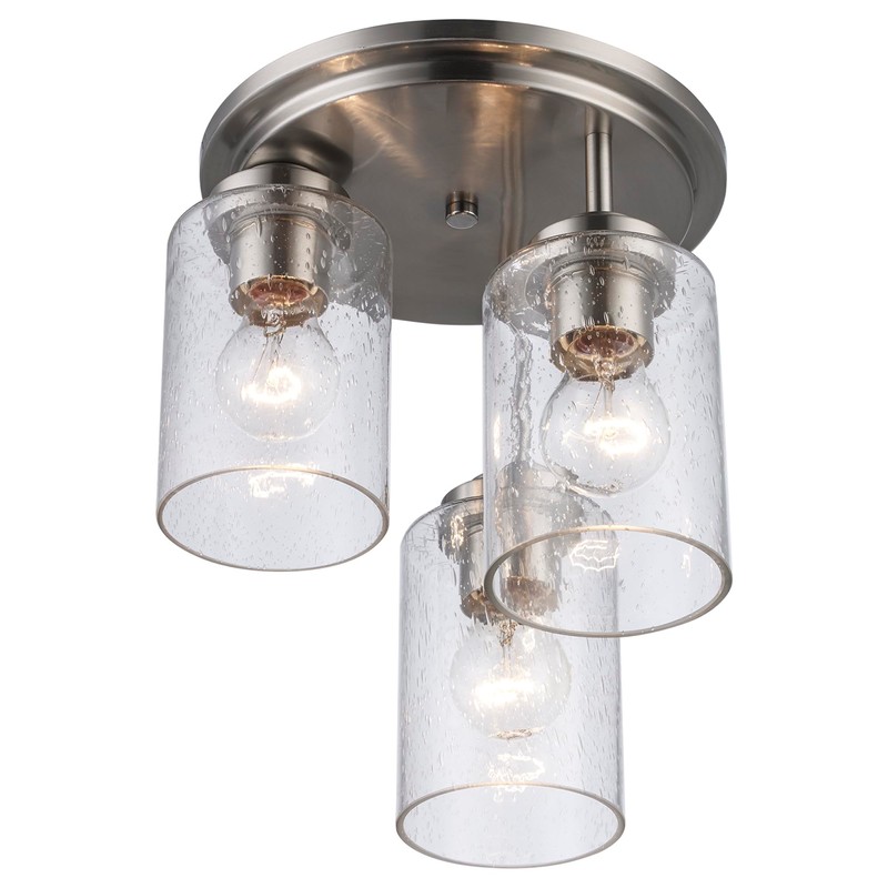 TRANS GLOBE Lighting 80520-3 BN Mod Pod Collection Three Light 11 Inch Ceiling Flush Mount I in a Brushed Nickel Finish with Seeded Glass Shades I Modern Contemporary Light Fixture I