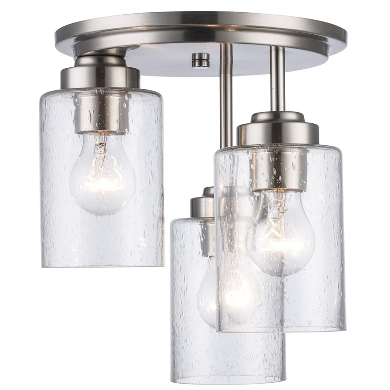 TRANS GLOBE Lighting 80520-3 BN Mod Pod Collection Three Light 11 Inch Ceiling Flush Mount I in a Brushed Nickel Finish with Seeded Glass Shades I Modern Contemporary Light Fixture I