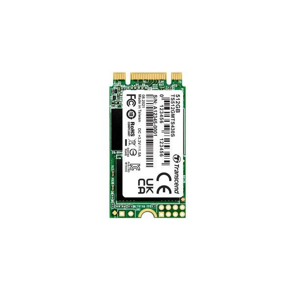 Transcend SSD M.2 2242 512GB SATA III 6Gb/s 3D TLC NAND DDR3 with DRAM Cache 5 Year Warranty TS512GMTS430S