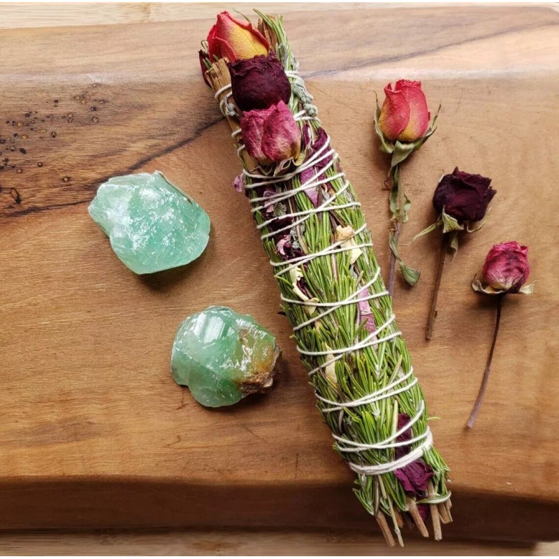 TRANSFORM Smoke Cleansing Wand, Rosemary, Cinnamon, Marjoram, Green Calcite