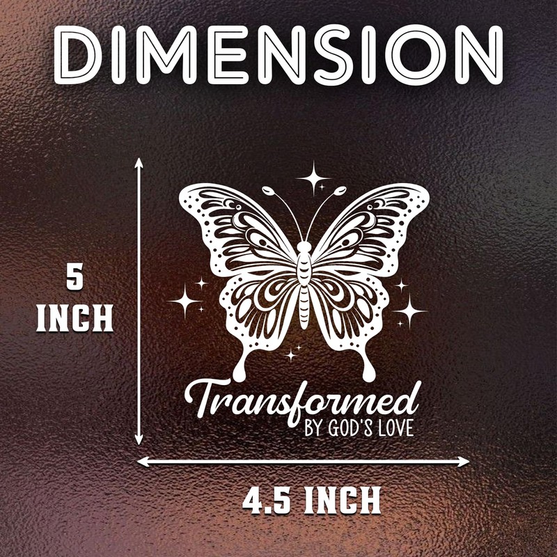 Transformed by God's Love Car Decal Butterfly, Love Jesus, Bible Verse Christian Decals,Car Fuel Tank Cap Sticker, Window Bumper Stickers, Vinyl Waterproof 5 Inch Decal Gifts for Mom Dad Friend