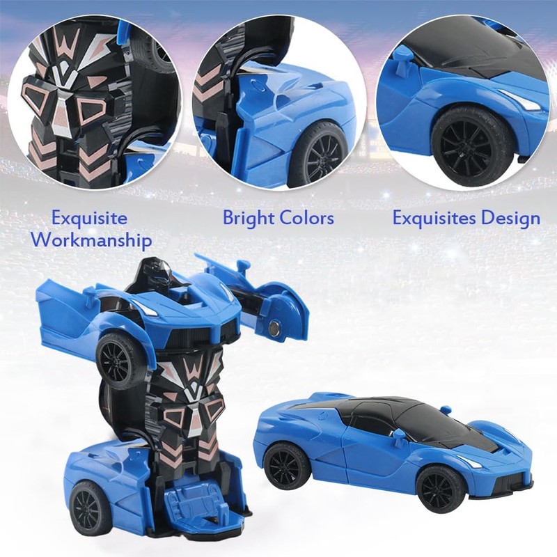 - 【Transformation Robot Car Toys】Our sports car toy measures 13 x 6cm before transformation and 11.5 x 9.5cm after transformation. medium size for gripping. The whole is blue, bright and colourful. Kids can have a racing competition with their buddies, as the car can use inertia to travel.