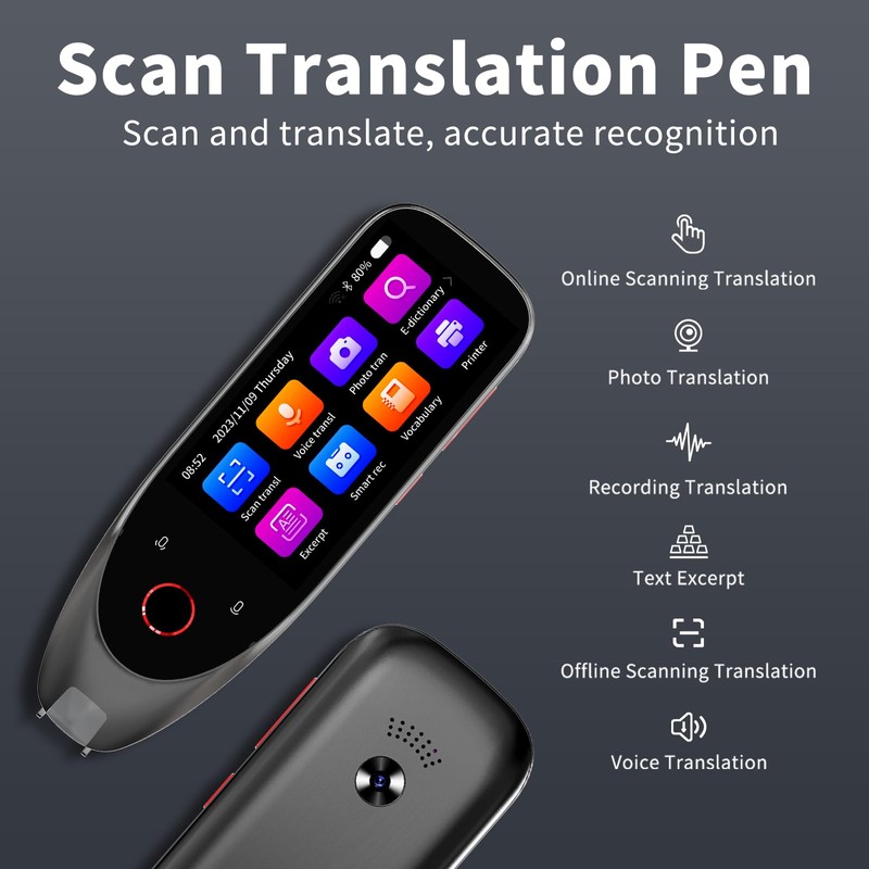 • Text to Speech: translator pen for dyslexia,that can quickly scan words and sentences, read the original and translated text aloud, and display them immediately on a 3-inch screen with large and clear fonts. It is the perfect reading pen for children, students, and speech learners.
