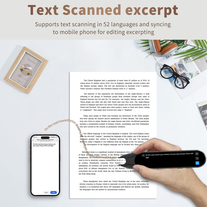 - 【Text Excerpt Function】This reading pen extracts and translates key text from documents or images, allowing users to capture important details quickly. Ideal for professionals, students, and travelers who need to gather essential information on the go, this feature helps you access the most relevant parts of any text. Whether you're in a meeting, reading a book, or translating a foreign document, this translation device makes it easier to find and understand key information.