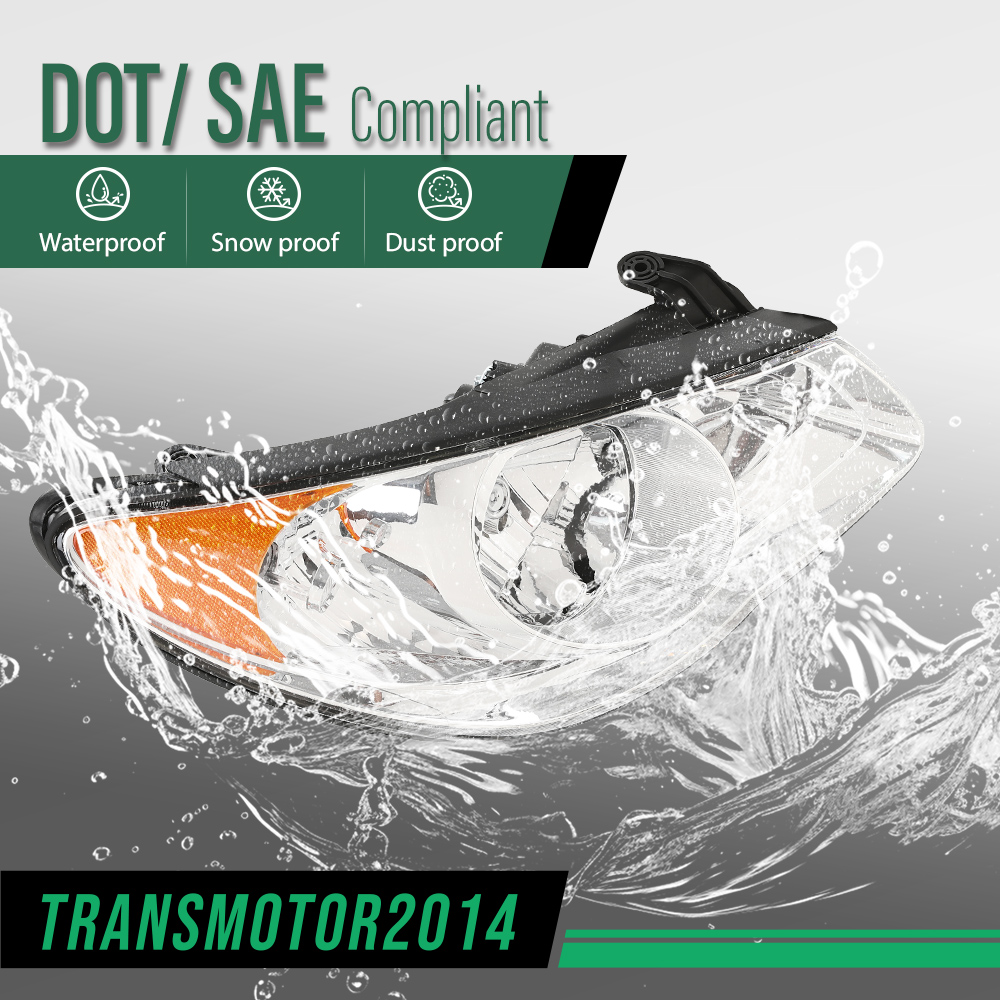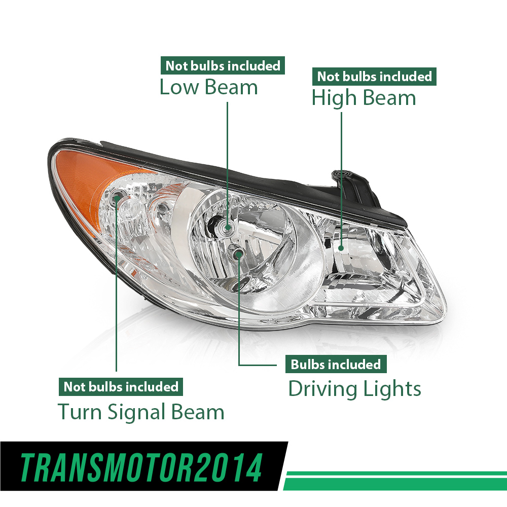 transmotor2014 Halogen Headlight Headlamp Right Passenger Side Fit For 2007-2010 Elantra Sedan