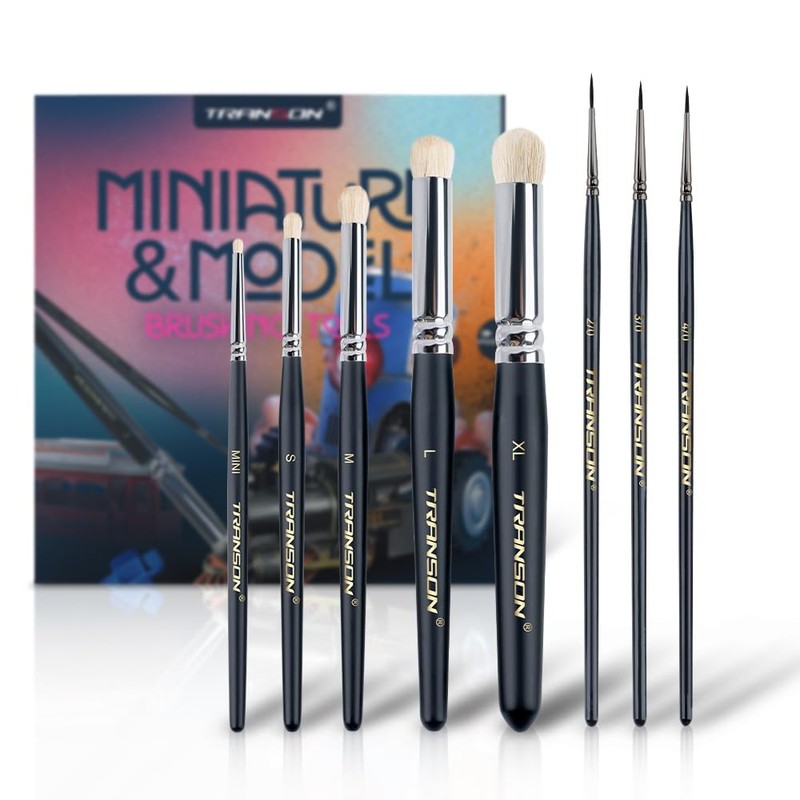 Transon 8pcs Miniature Painting Dry Brush Set with 5 Drybrushes and 3 Small Detail Brushes for Model Making and Miniature Model Painting