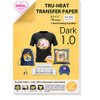 - đź’•TRU-TRANSFER PAPER: Pack of 15 sheets Dark transfer paper and 3 sheets reusable Silicon Paper. Our dark iron-on transfer paper is produced with waterborne polyurethane by AI edge technology, allowing transfers stretchable and non-breakable up to 2X its original size, especially easy to cut with scissors or die cutting machine. Our advanced and unique formula guarantees the transfers vibrant, soft and durable. No peeling, No cracking and No fading after 30 washes.