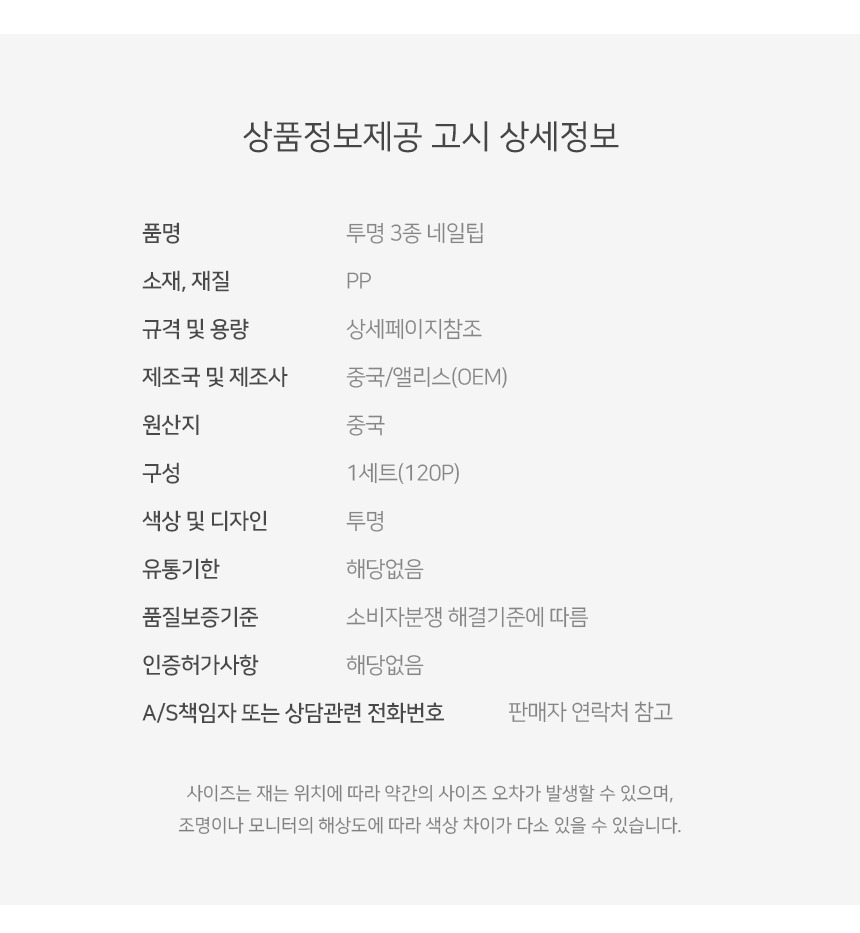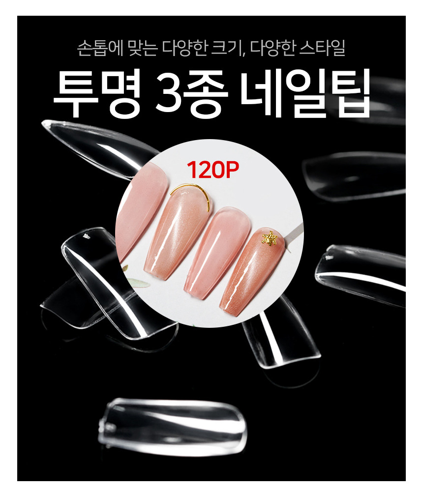 투명 3종 네일팁 인조 손톱 피스 - 기본형(a)