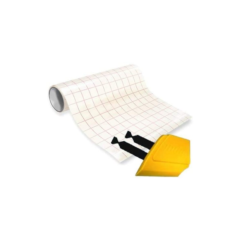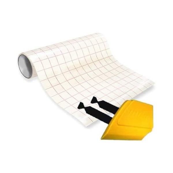 Transparent High Gloss Vinyl Transfer Paper Grid Back 3mil Self Adhesive Sheet 12" Roll Plus Detailer Squeegee and Black Felt Safety Decals (12" x 25ft)