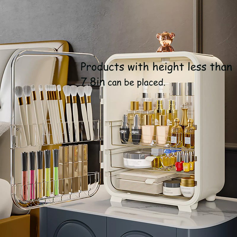 This product is suitable for storing skin care products with a height of less than 7.87inch. It can be widely used in living rooms, bedrooms, bathrooms, apartments, and university dormitories to store cosmetics, lotion, skin creams, nail polish, makeup brushes, lipsticks, facial masks, combs, and other items.