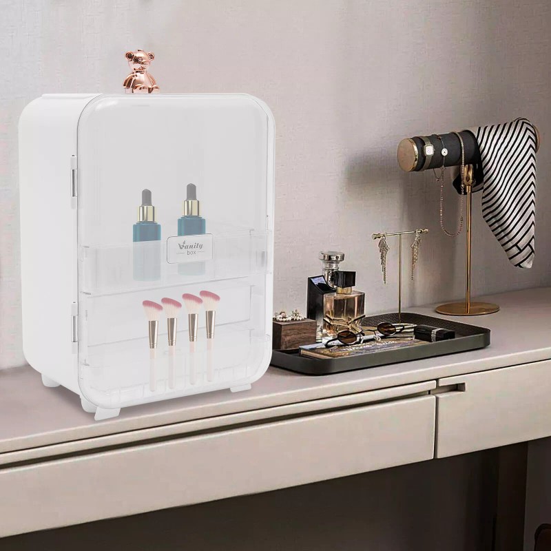 In daily life, a clean and orderly space can make us feel relaxed and happy. When there are many disordered items, an organizer is essential. This large-capacity makeup storage box is made of PP and the bear adopts electroplating processes, so the whole item is durable and has a strong bearing capacity of 20lbs. It can help you store in order and bid farewell to the messy desktop. With it, the happiness of life will follow.