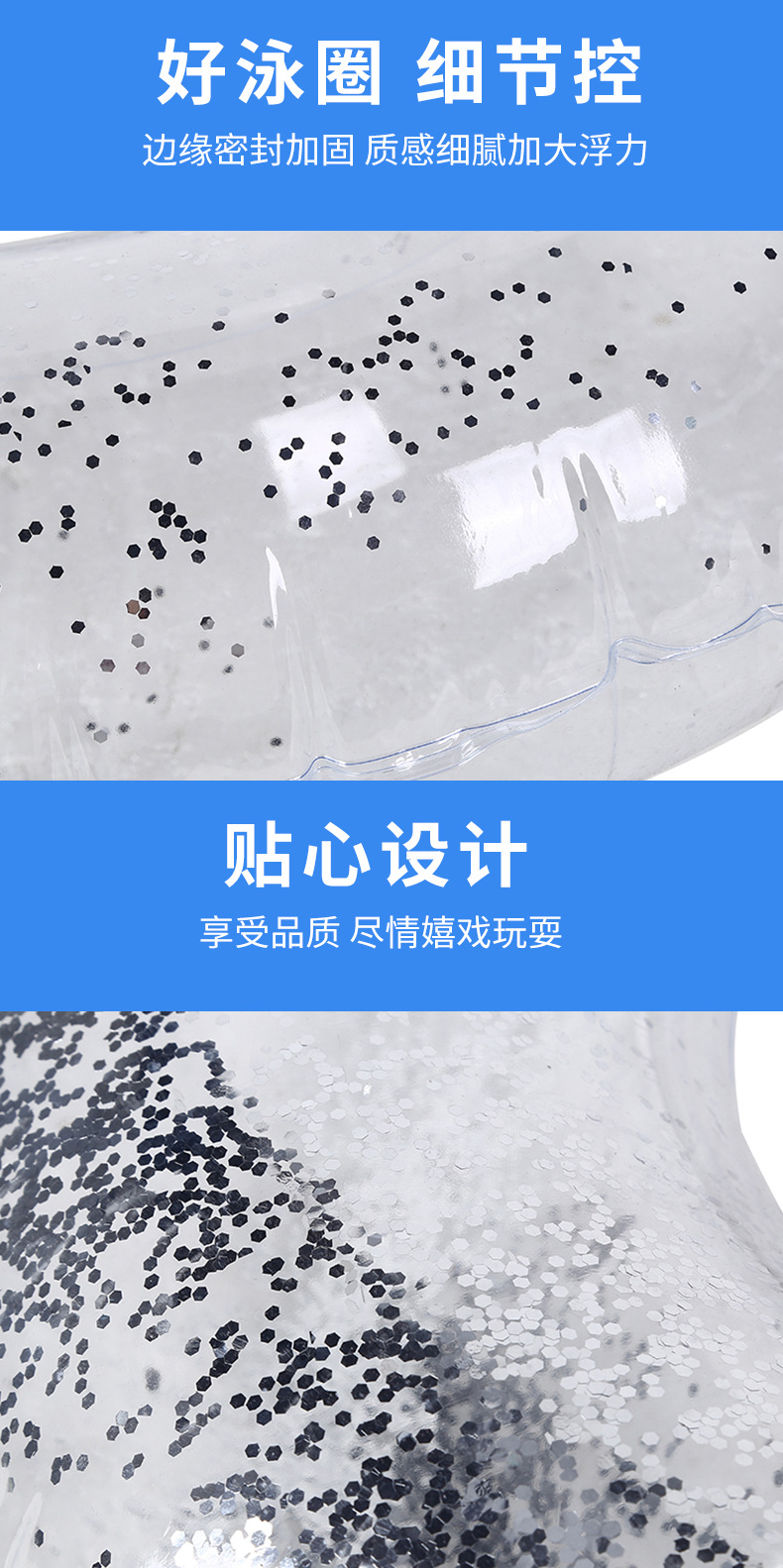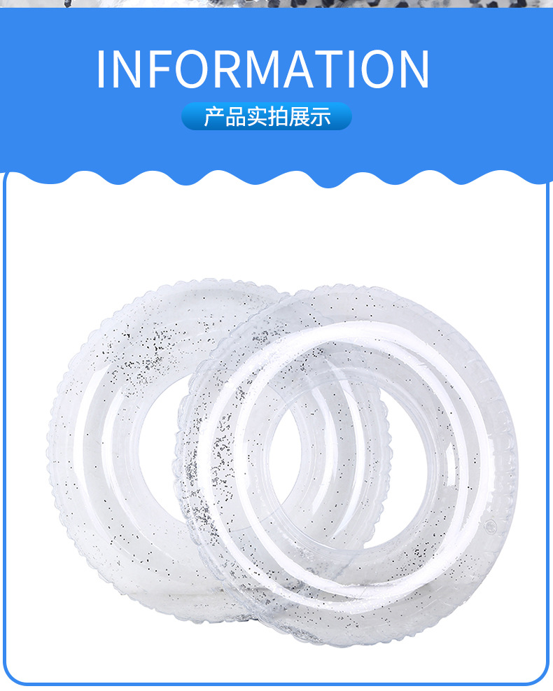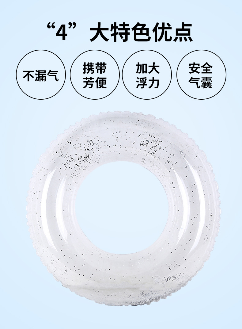 Transparent Thick Sequin Adult Swimming Ring 80cm 15ea