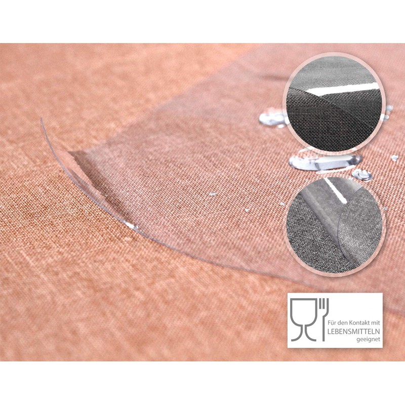 The table protective film offers versatile uses and is also suitable for crafts. The PVC material is approx. 0.30 mm thick, waterproof, tear-resistant and dirt-repellent. The edges of the film never fray and the cut edge is always retained. Dirt can be easily wiped off with a damp cloth and the table film can be used on both sides. Die Transparente Tischdecke ist für den Kontakt mit Lebensmitteln geeignet.