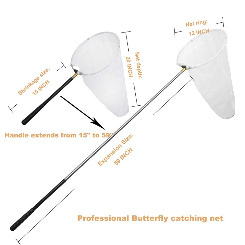 - Wide application: This extendable catching net is great for different butterfly, dragonfly, bat, fish and other bugs. and anything else that catches your eye, Nets for insect specimen capture