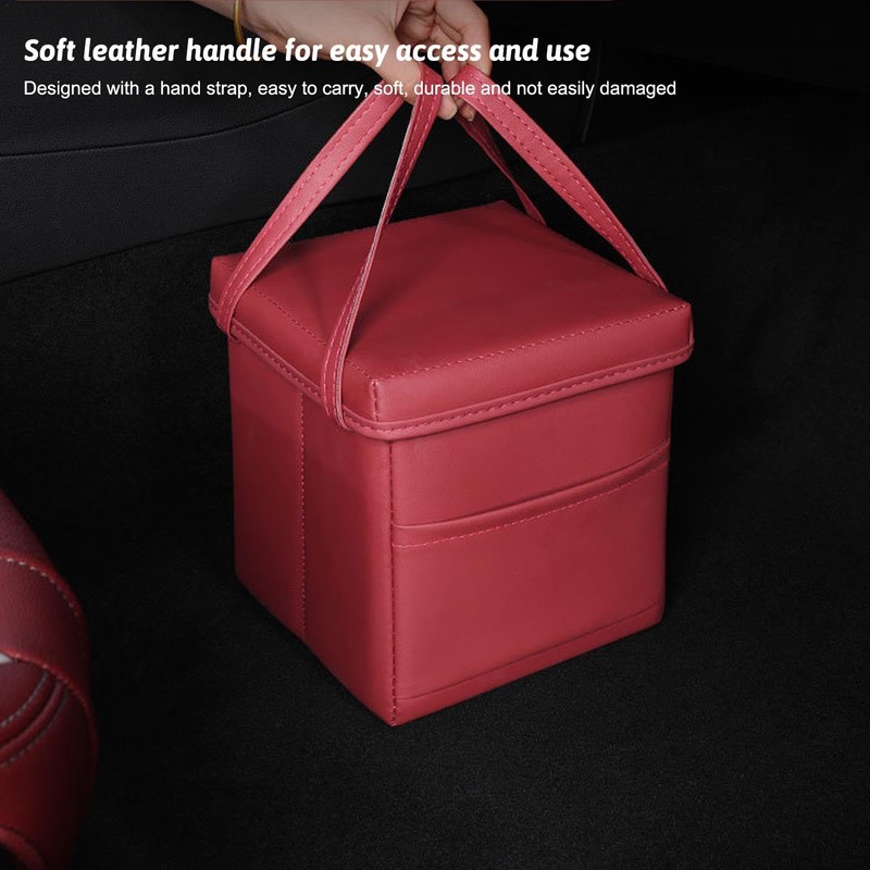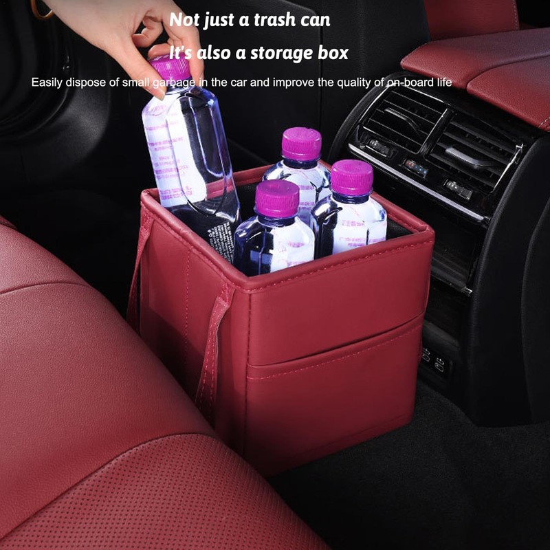 - Convenient Car Cleanup: Don't let clutter ruin your car any longer. Our car trash can with storage pockets is great for organizing trash and has a folding storage function. Designed with a soft leather handle and carrying strap for easy portability, it doesn't take up too much space