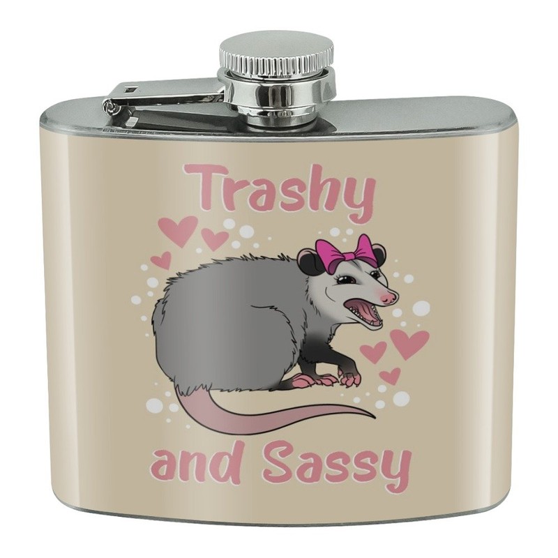 Trashy and Sassy Opossum Funny Stainless Steel 5oz Hip Drink Kidney Flask