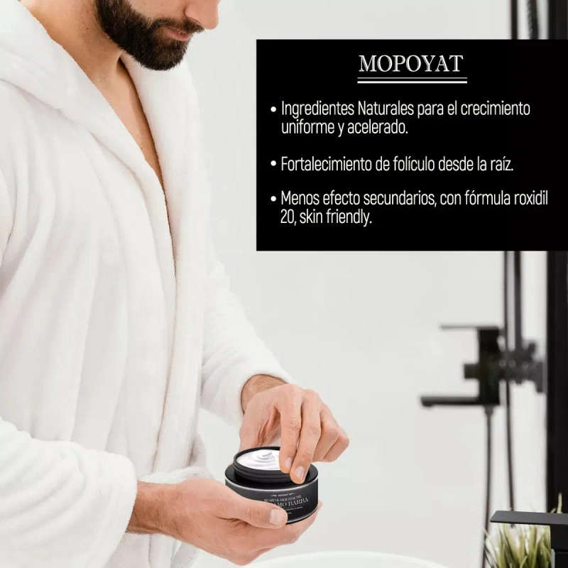 Aumento significativo de la densidad: Promueve el crecimiento de vellos más gruesos y abundantes, resultando en una barba y bigote con mayor volumen ✨🧔.