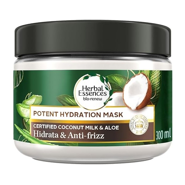 - HIDRATA INTENSAMENTE. ¿Buscas suavizar e hidratar el cabello desde el primer uso? Herbal Essences tiene la solución ideal para cabello seco de raíz a puntas, crespo, rizado, con frizz o esponjado: el tratamiento intensivo multi-uso leche de coco y aloe.