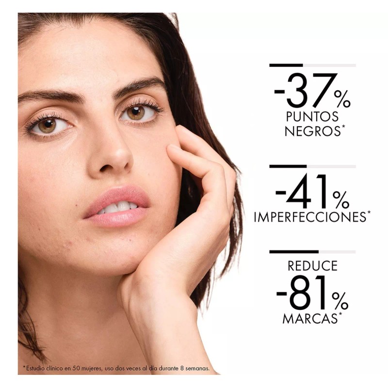 El Tratamiento Vichy Normaderm Doble Corrección 50ml está diseñado para pieles grasas con imperfecciones, ofreciendo una doble eficacia al reducir imperfecciones, puntos negros y marcas de acné, mientras mejora la calidad de la piel con hidratación durante 24 horas, matifica y reduce los poros. Sus beneficios incluyen fortalecer la piel contra agresiones externas, proporcionar una piel purificada, hidratada y regenerada, con una textura fluida de rápida absorción y protección contra la contaminación. Hipoalergénico y no comedogénico, este tratamiento es testeado bajo control dermatológico, aplicable mañana y/o noche después de limpiar la piel, evitando el contorno de los ojos. Se recomienda para personas de 18 a 45 años con piel con tendencia acneica, con un formato de 50 ml libre de parabenos y dermatológicamente testeado.