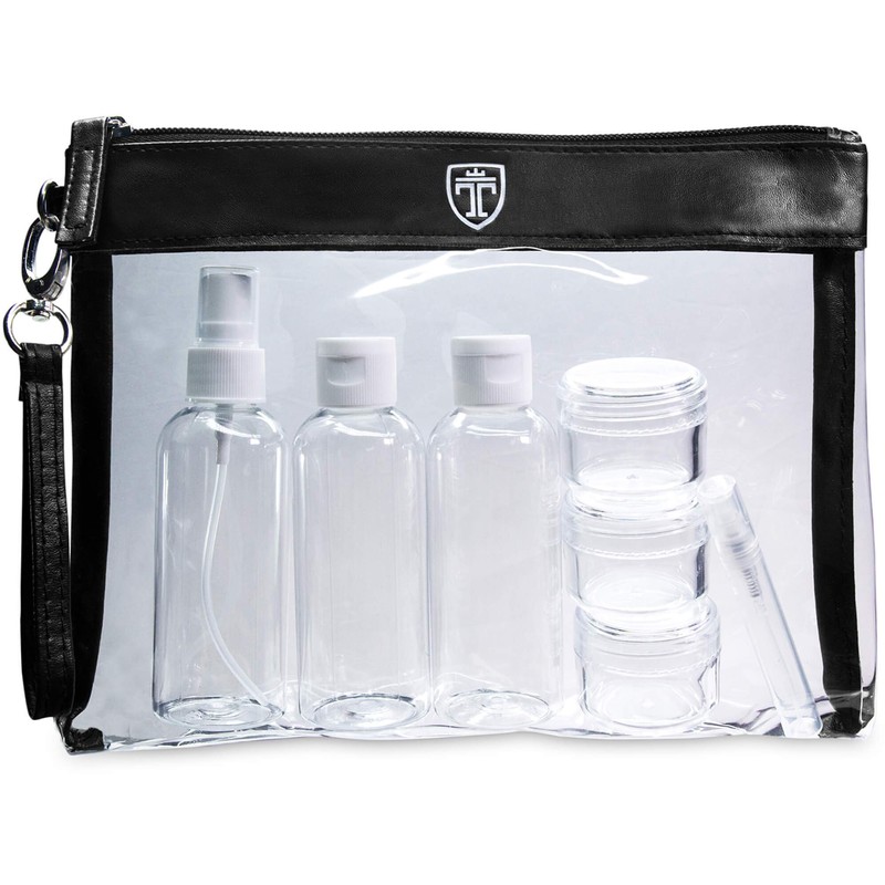 - The travel set includes 7 leak-proof travel bottles for liquids for filling toiletries (max. 100 ml)