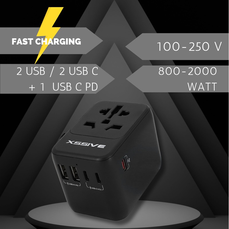 Travel Adapter Worldwide, Travel Adapter, Socket Adapter with 2 USB, 3 USB-C incl. PD Fast Charge, Travel Plug with Quick Charge, International Travel Adapter for US, UK, EU, AUS