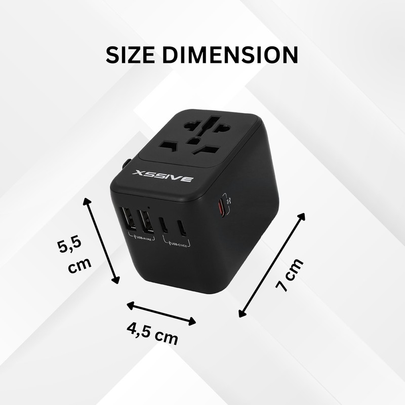 - Compact & Lightweight: With its dimensions of 7cm length, 4.5cm width and 5.5cm depth, our travel adapter is handy and space-saving. It fits easily into hand luggage, backpack or even jacket pocket, so you can take it with you at any time
