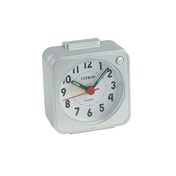 Travel Alarm Clock Silent Sweep luminous Hands -Silver CLK31C