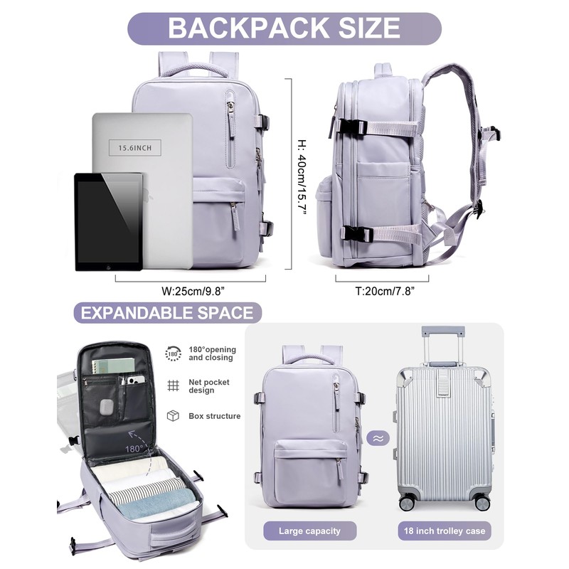 Travel Backpack Women,Carry On Backpack Flight Approved 18x14x8 inches Bag Spirit Airlines Personal ltem,College Sports Hiking Rucksack Waterproof Casual Daypack Laptop Blackpack Men Taro Purple