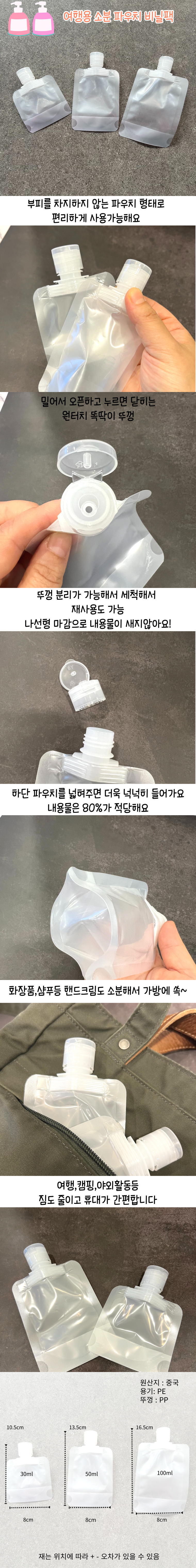 Travel Cosmetic Refill Plastic Pouches 30ml 50ml 100ml 50ml 25ea