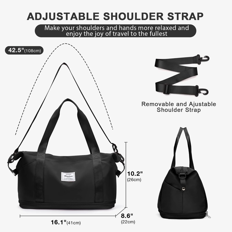 - 【Dry Wet Separated Tote Gym Bag】High-density waterproof wet pocket in the main compartment,which can help you to separate dry items and wet items,if you have wet clothes or towel,you can put it in this crossbody bag.