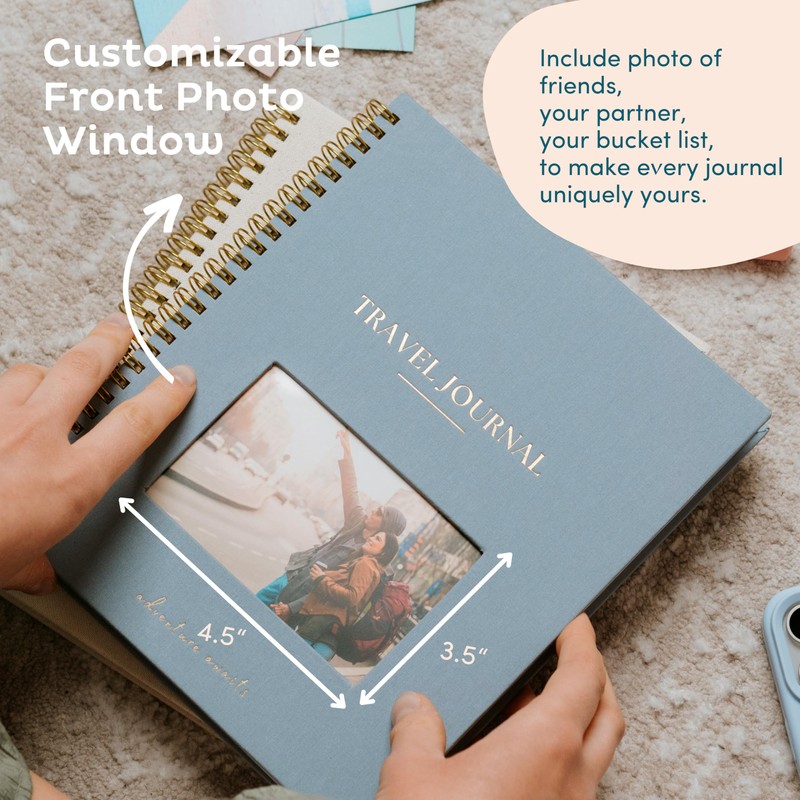 - Customizable Front Window - Make this travel journal notebook a truly personal keepsake. The cover's window cut-out can be filled with your favorite travel photos, or personalized with specific dates or names, inspiring creativity with every glance.