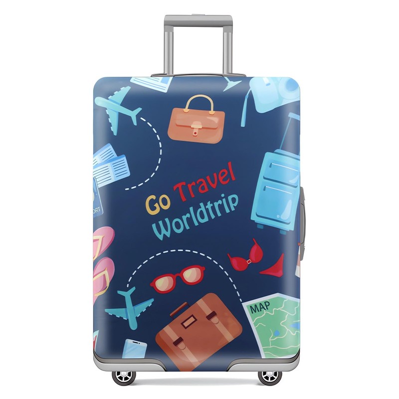 Travel Luggage Cover Protector, Washable Suitcase Cover Trolley Luggage Case, Elastic Dustproof Travel Protective Covers for 22''-32'' Inch Luggage (Go Travel, L-(26-28 inch luggage))