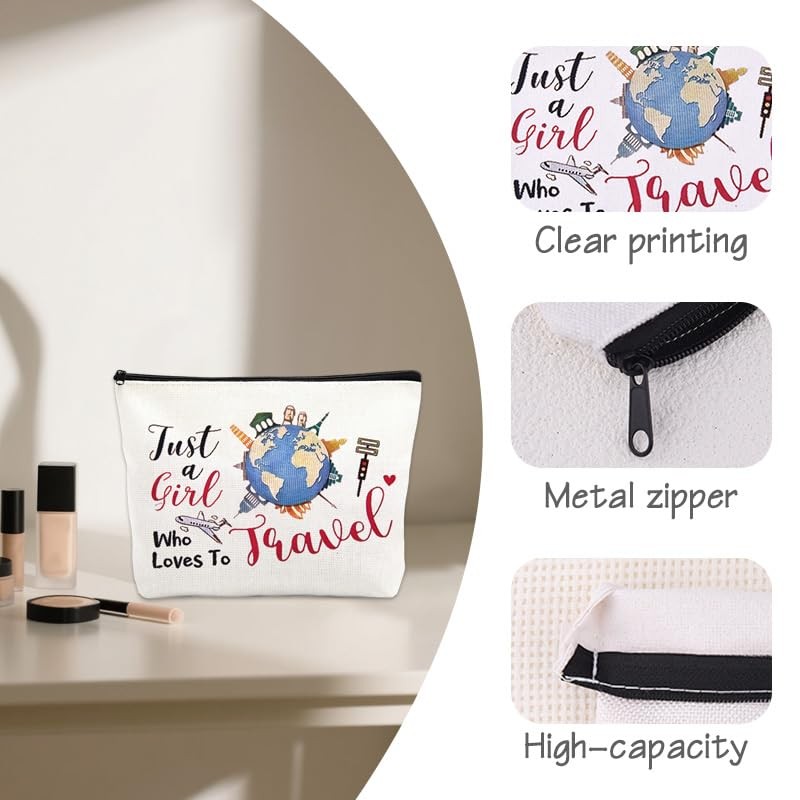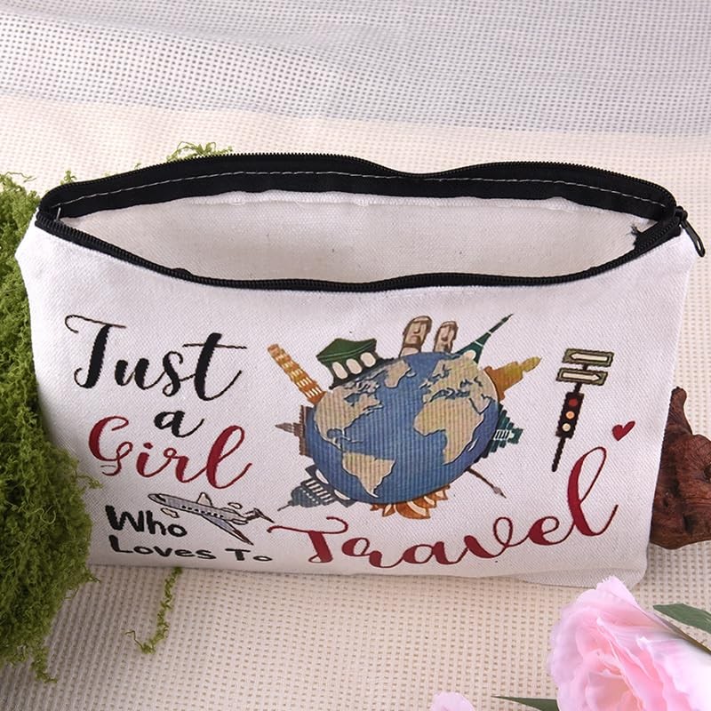 Travel Makeup Bag Gifts for Travellers Best Friend Birthday Christmas Gifts for Travelling Travel Toiletry Bag for Girls Women Just A Girl Who Loves to Travel Bag Pouch for Daughter Sister