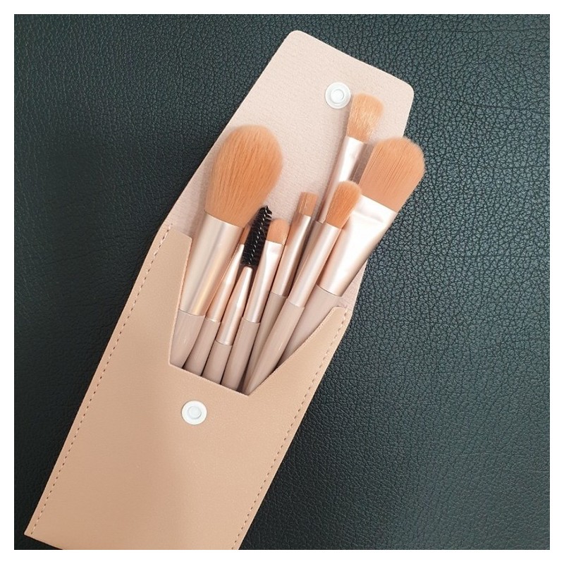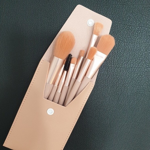 Travel Mini 8-Piece Makeup Brush Set with Storage Pouch 2ea