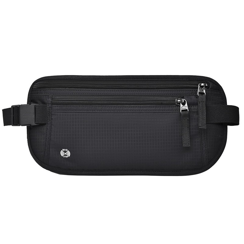 Travel Money Belt Secure RFID Blocking Money Belts for Travel Hidden Men Waterproof Undercover Travel Waist Bag Anti Theft Travel Wallet for Passport, Phone, Credit Card & Cash, Black