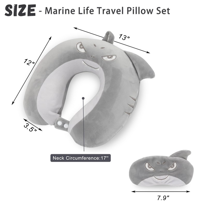 Travel Pillow, Kids Travel Pillow with Sleep Eye Mask Soft Memory Foam Kids Neck Pillow for Boys & Girls, Travel Accessories for Car Airplane Traveling - Shark